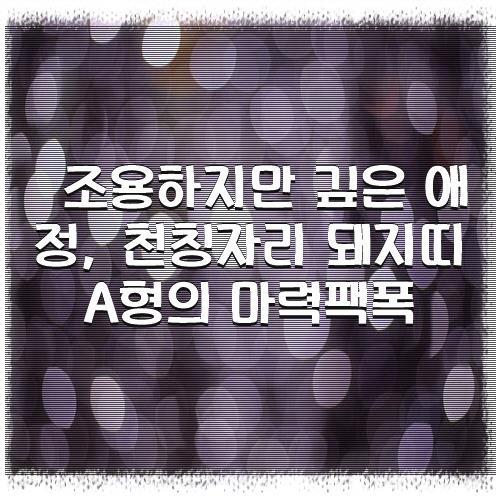 정리드린 내용은 조용하지만 깊은 애정, 천칭자리 돼지띠 A형의 마력팩폭 입니다. 도움이 되셨길 바랍니다.