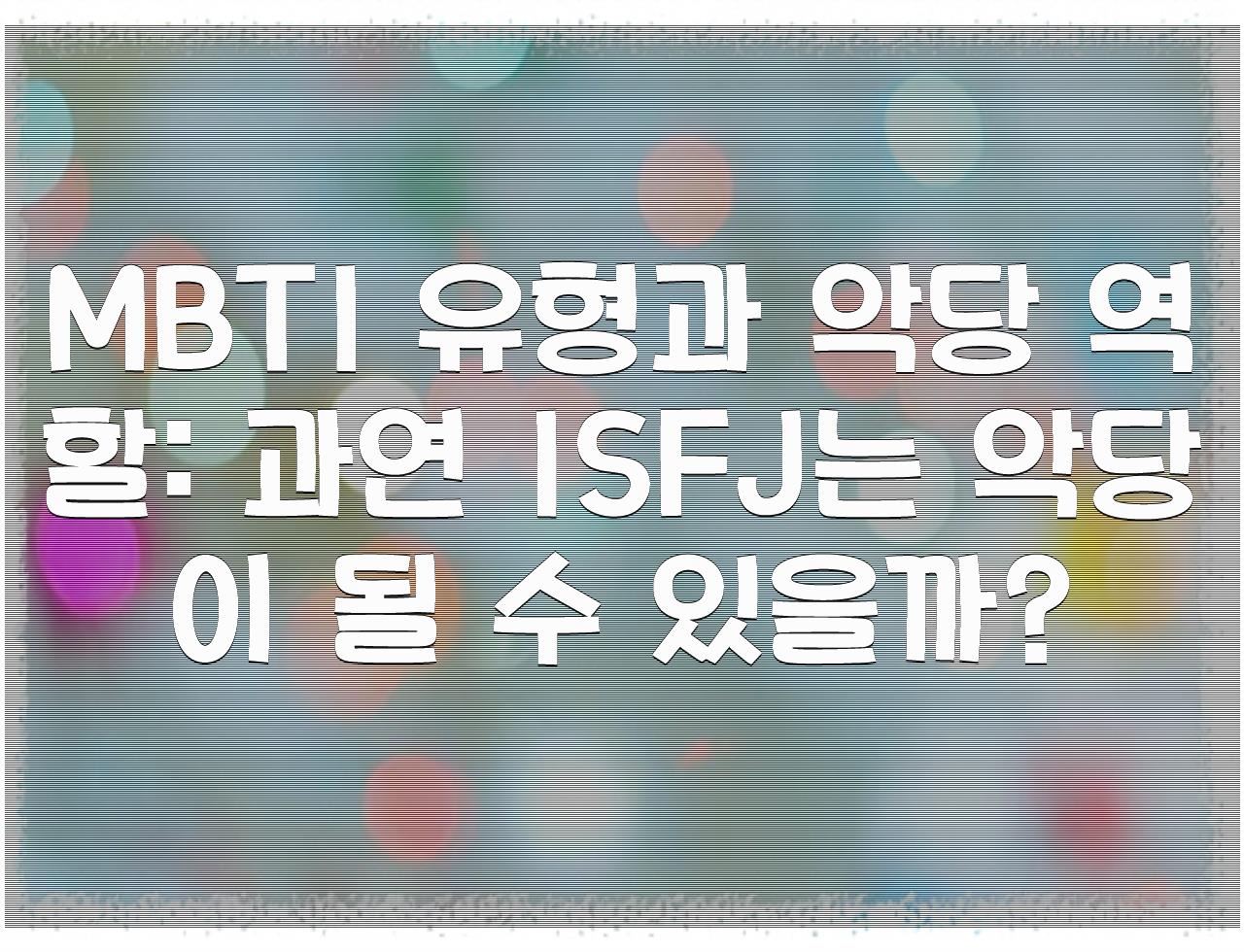 MBTI 유형과 악당 역할: 과연 ISFJ는 악당이 될 수 있을까? 관련내용 확인 해 보시겠습니다.