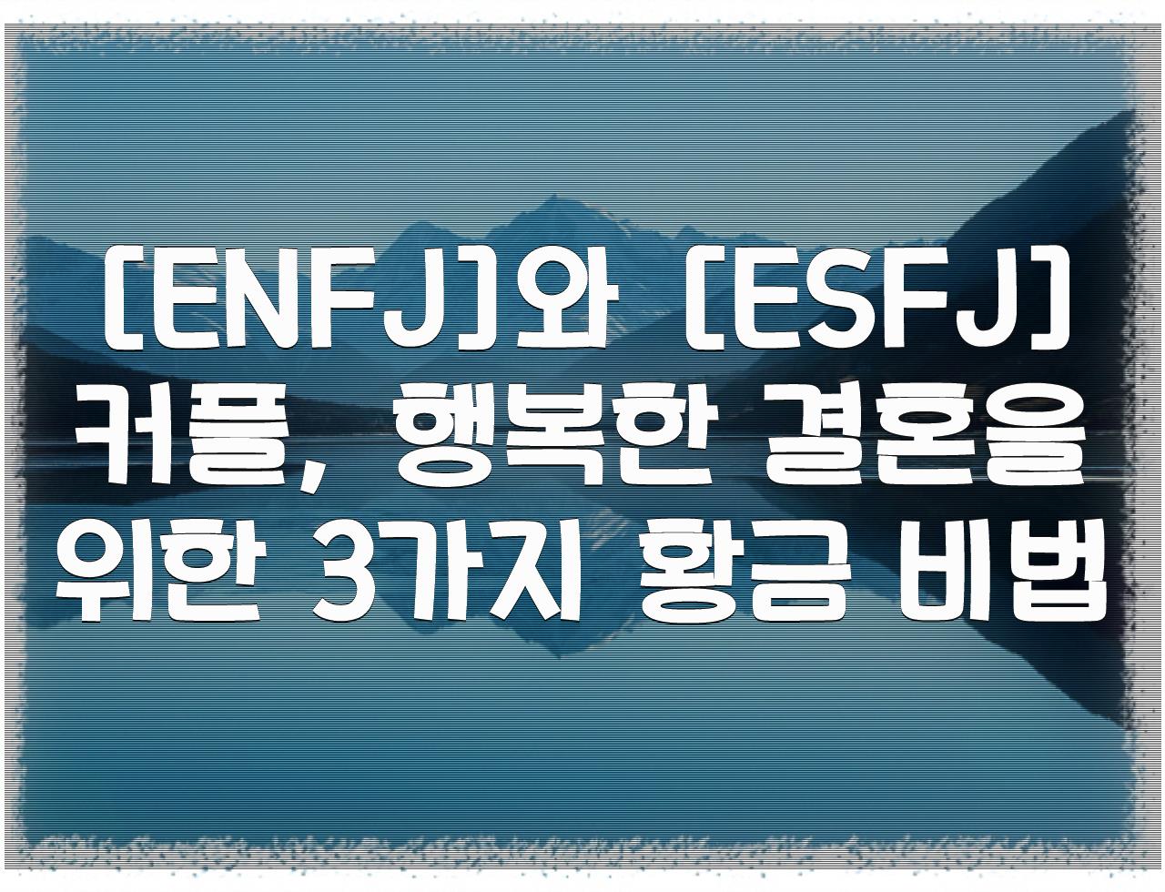 정리드린 정보는 [ENFJ]와 [ESFJ] 커플, 행복한 결혼을 위한 3가지 황금 비법 관련 정리 입니다. 찾으셨던분께 좋은 정보가 되셨길 바랍니다.
