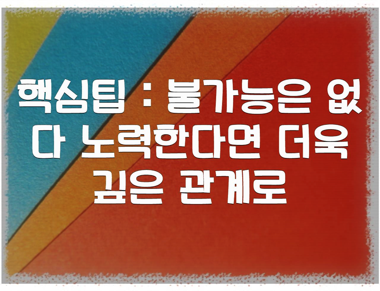 핵심팁 : 불가능은 없다 노력한다면 더욱 깊은 관계로