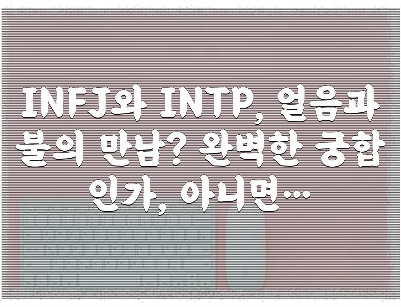 정리드린 글은 INFJ와 INTP, 얼음과 불의 만남? 완벽한 궁합인가, 아니면… 관련 정리 입니다. 이해에 도움이 되셨길...